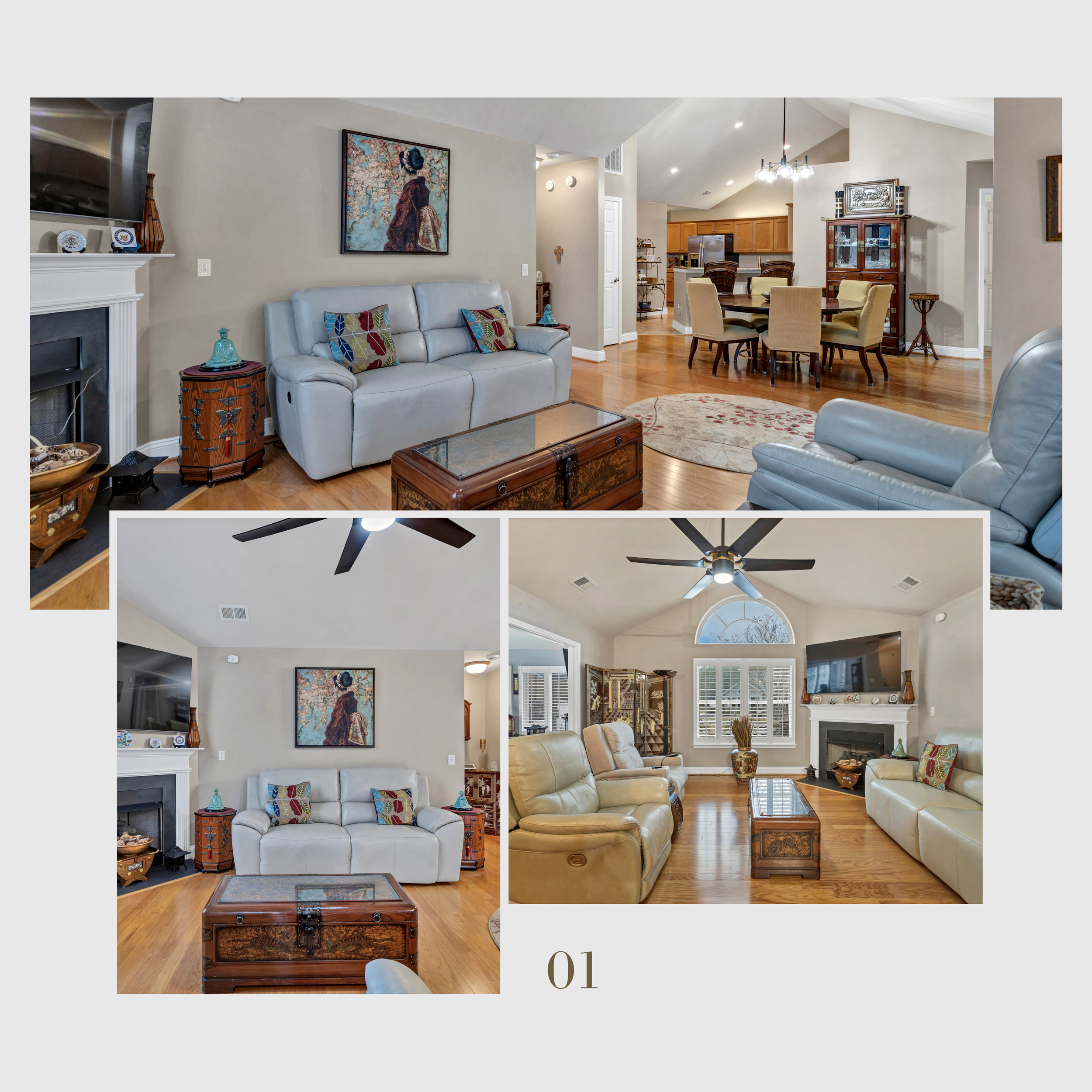 Experience modern living with updated amenities. The kitchen boasts stainless steel appliances and granite countertops, seamlessly connecting to the spacious great room featuring a cozy gas log fireplace. The primary bedroom impresses with high ceilings, a walk-in closet, double bathroom vanities, and a remodeled low-entry cultured marble shower.